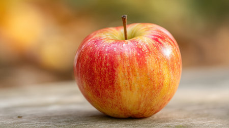Luscious gala apple basking in the sunshine on wooden surface
