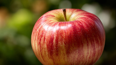 Fresh Red Apple with Water Droplets Gleaming Under Sunlight, a Healthful Snack