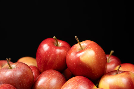 Red apples close up, black background
