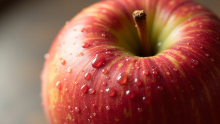 Freshly washed apple with water droplets and soft light