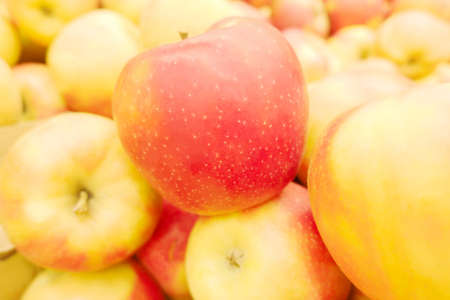 fresh organic apples close up at market for background.