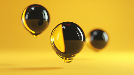 3d render of glass balls on yellow background. 3d illustration