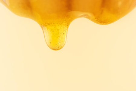 Dripping honey on golden background