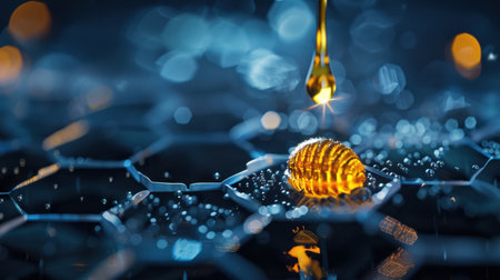 3d render of oil capsule in hexagonal honeycombs.