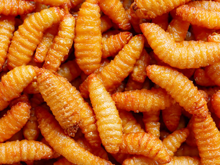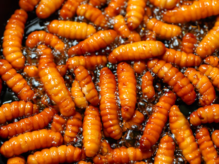 Chengdu, Sichuan, China. Fried Mealworm Larvae. Street Roasted Mealworm. Popular Snacks In Southeast Asia. New Source Of Protein. Fried Silk Worms Sichuan Snack. Mealworm Pupae Are Good Source Of Protein, Lipids, Minerals, And Vitamins. Modern Food Concept