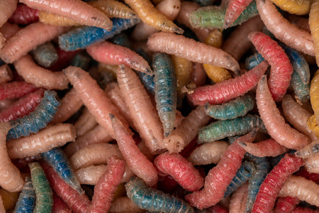 Group of worms Zophobas morio. Close up shooting of Worms. selective focus