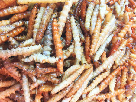 Fried insects protein rich food, Bamboo worm insect crispy with sauce