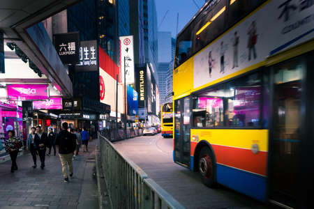 HONG KONG, CHINA - CIRCA JANUARY, 2019: view seen from second deck of double-decker bus in Hong Kong in the evening.
