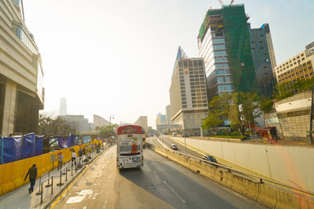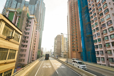 HONG KONG, CHINA - CIRCA JANUARY, 2019: view seen from second deck of double-decker bus in Hong Kong in the daytime.