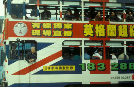 HONG KONG - JULY 17: Double-decker bus on the street of Hong Kong. Hong Kong, China - July 17, 2011.