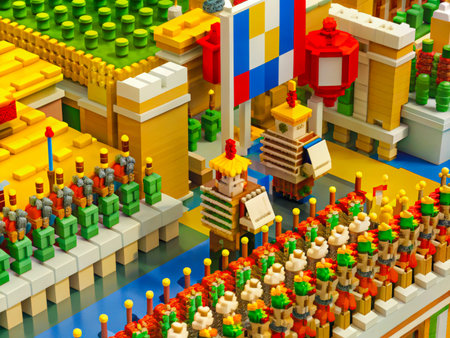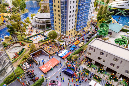 Johor, Malaysia, 20th Jan 2021 - Scenery of miniature model made of Lego bricks at Legoland, Johor, Malaysia.. Selective focus. Contains noise and grain