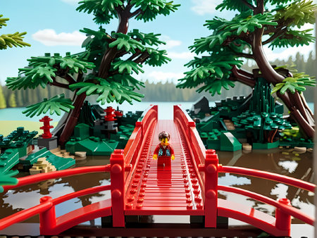A stunning digital rendering evokes a world built from Lego blocks, featuring a castle-like structure amidst a colorful and imaginative landscape, perfect for creative projects.