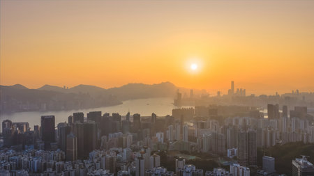Cityscape sunset at Hong-kong, top view at the Peak