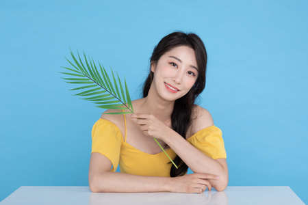Woman Portrait Beautiful Teenager Young asian Woman isolated on blue background