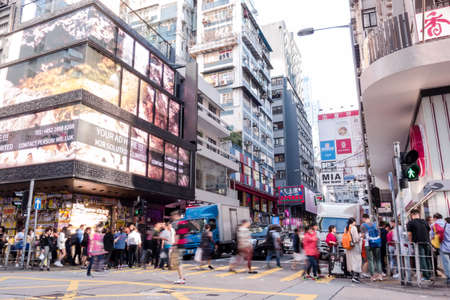 Tsim Sha Tsui, Hong Kong - 07 November, 2018 : People walk in Tsim Sha Tsui district. Tsim Sha Tsui is one of the major shopping areas in Hong Kong.