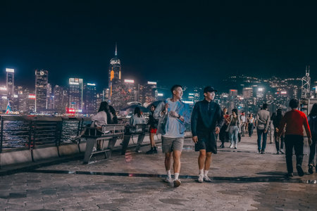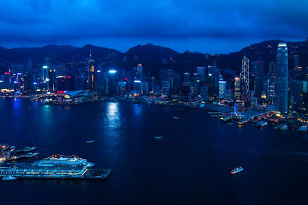 Hong Kong - August 7, 2018: Hong Kong cityscape view from the Victoria harbor at night
