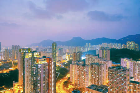 The cityscape of Hong Kong city during dusk time.