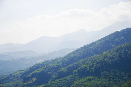 Landscape of mountain range and foggy sky at sunrise in Taiwan