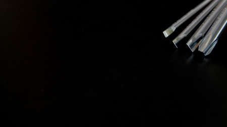 Metal screwdrivers tool isolated on black background. Screwdrivers with shadows. Closeup, selective focus