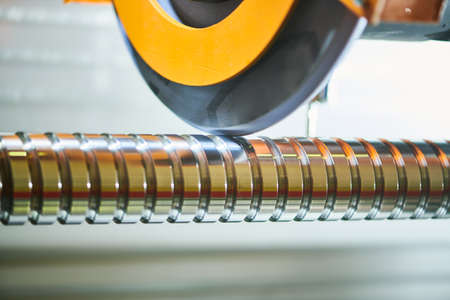 metalworking machining industry. finishing or grinding metal surface on grinder machine at factory