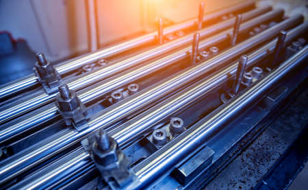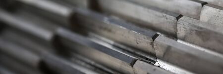 Straight row of metal bars after grinding.