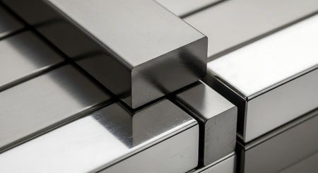 This image features three rectangular metal bars with smooth surfaces aligned horizontally on a brown background. Ideal for showcasing industrial and construction materials.