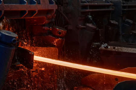 Red hot steel metal armature after molten steel casting. Background of the blacksmith and metallurgical industry.