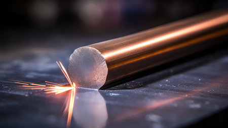 A detailed close-up view of metal rods in an industrial setting, illuminated by sparks, highlighting the dynamic process of manufacturing and metalworking.