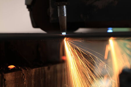 Industrial double flame cutting processing manufacture technology of flat sheet metal steel material with sparks