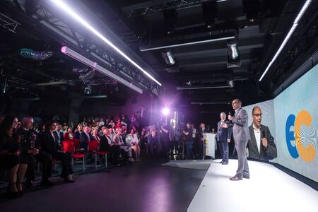 Skolokovo, Russia - October 16, 2017: People attend Open Innovations 2017 forum in new building Skolkovo Technopark.
