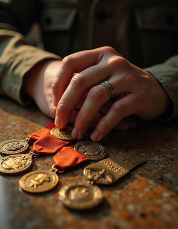 Military medals pinned on a uniform, representing honor, valor, and dedicated service