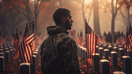 American Veteran Stands Proud, Honoring Veterans Day with Patriotism, Remembrance, and Gratitude.