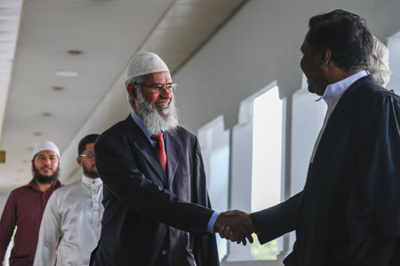 KUALA LUMPUR, MALAYSIA - MAY 22, 2023: Indian Islamic preacher Dr Zakir Naik arrives at Kuala Lumpur Court. He is also the founder and president of the Islamic Research Foundation & Peace TV Network.