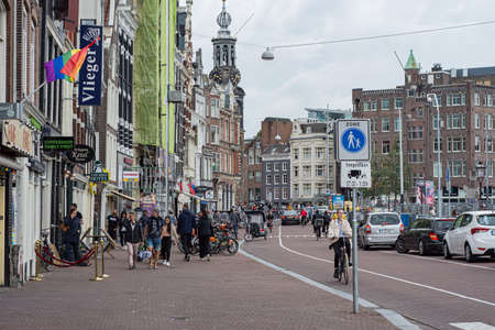 AMSTERDAM, NETHERLANDS - JUNE 01, 2015: Typical view of streets of Amsterdam in summer. Amsterdam is the capital city and most populous city of the Kingdom of the Netherlands