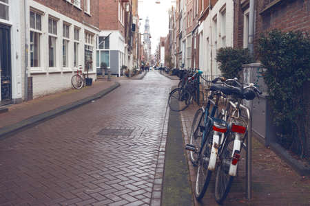 retro bike standing on a street of amsterdam, netherlands