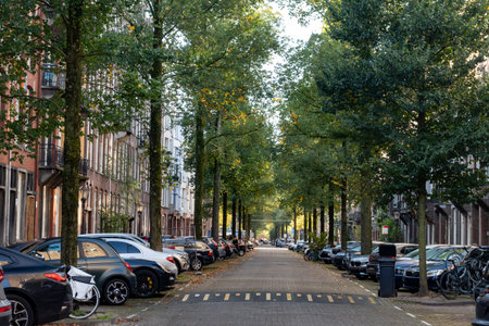 Early morning in the streets of Amsterdam, the Netherlands, with parked cars