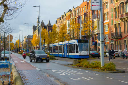 AMSTERDAM, THE NETHERLANDS - NOVEMBER 18, 2018: Urban scene in Amsterdam, the Netherlands. Fish eye view