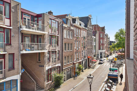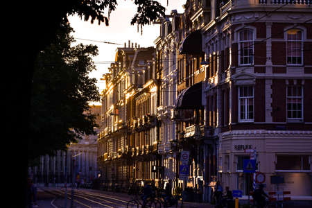 Amsterdam, Netherlands - July 03 2016: The traditional Dutch houses on Kerkstraat street, evening time