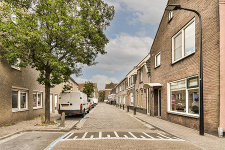 Street view of typical road and house in Amsterdam, Netherlands.