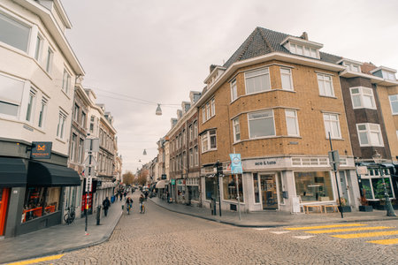 The Hague, The Netherlands - August 7, 2016: Unidentified people in Grote Marktstraat a commercial street in the city centre of the Hague. The Hague is the seat of the Dutch government and multiple international organizations.