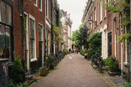 Picturesque narrow street in historic centre of Haarlem