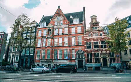 Amsterdam, Netherlands - October 15, 2019: Typical colorful buildings in Amsterdam, travel