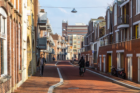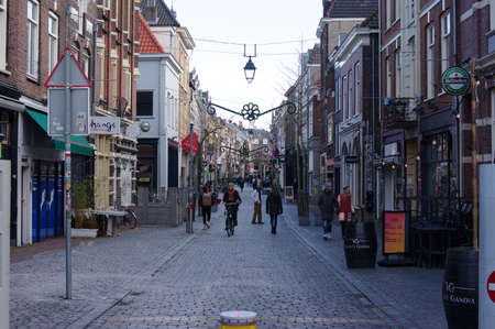 Dordrecht, Netherlands - 11 March 2016: View of the buildings and street in city and municipality in the Western Netherlands.