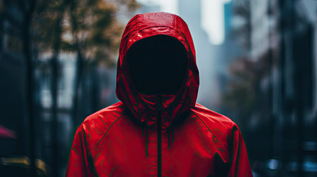 Red mystery: A person wearing a red jacket with their identity hidden, evoking curiosity and a sense of enigma