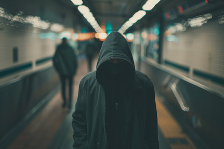 Anonymous Figure in Hoodie Walking Through Dark Urban Tunnel, Concept of Fear and Uncertainty