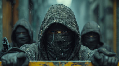 Dark Urban Scene: Hooded Figures in Cinematic Light
