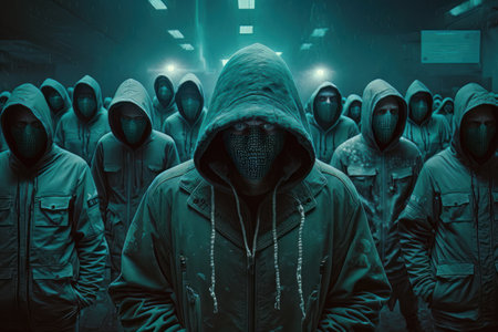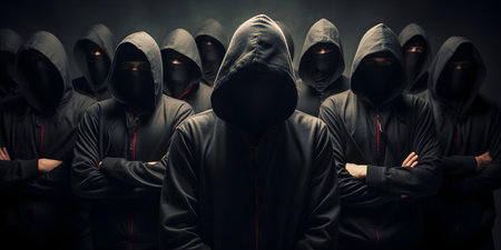 Dangerous hooded group of hackers. Internet, cyber crime, cyber attack, system. Ai, artificial intelligence, artificial, intelligence,