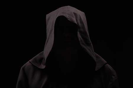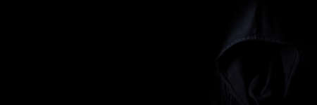 Faces are not visible in black robes in the dark on a black background. Banner.