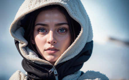 Winter Portrait of Person in Hooded Jacket Standing Outdoors in Cold Weather