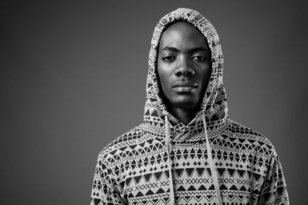 Young handsome African man against brown background